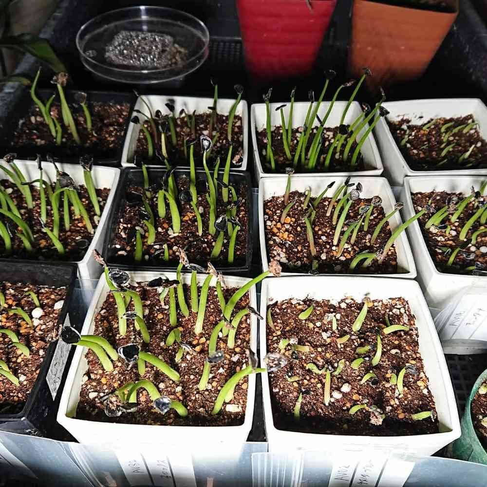 ワークショップで行った亀甲龍の実生は半分近い発芽率です。