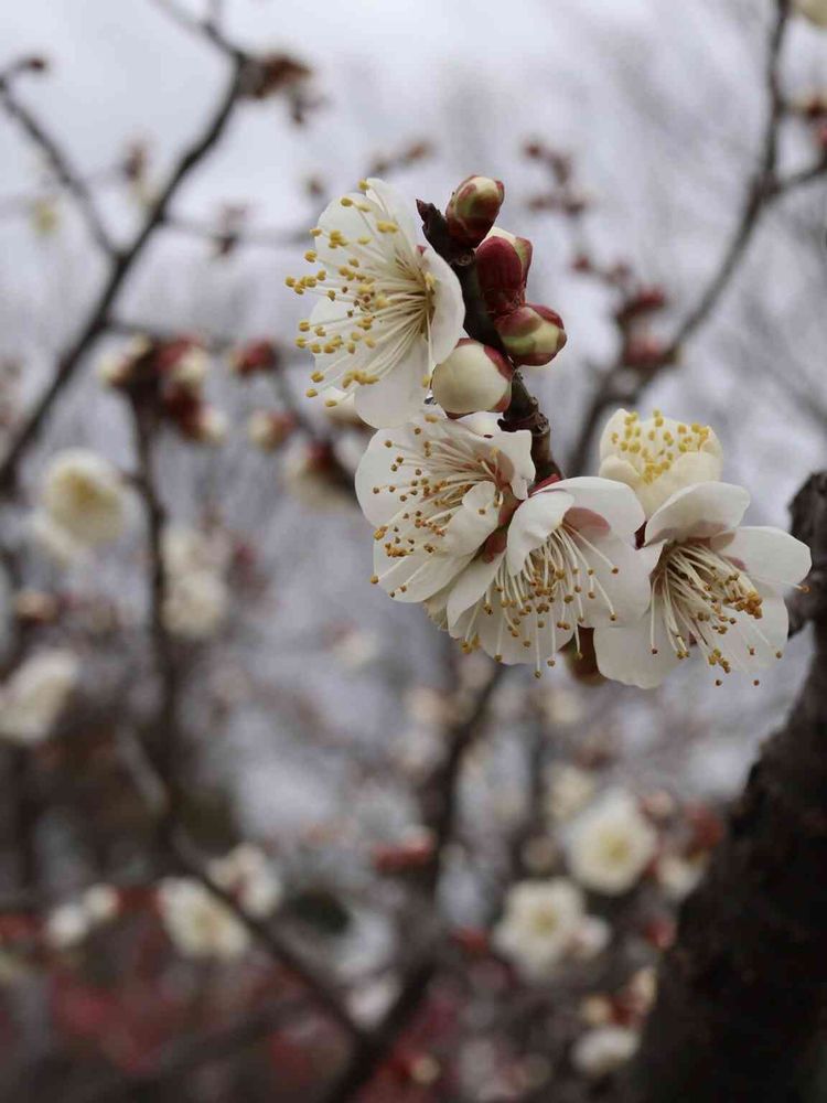 冬至の頃から咲きだす早咲き品種の冬至梅です