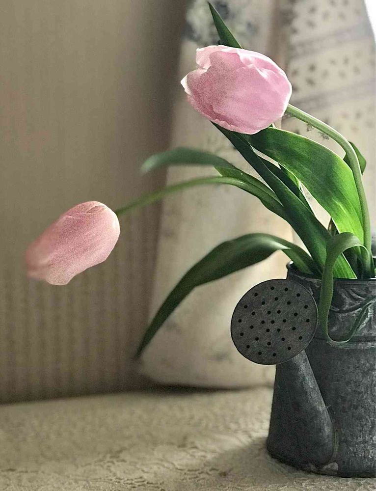 綺麗なピンクのチューリップ🌷を花屋さんでお買い上げ。部屋にお花があると気分があがりますね〜。😃