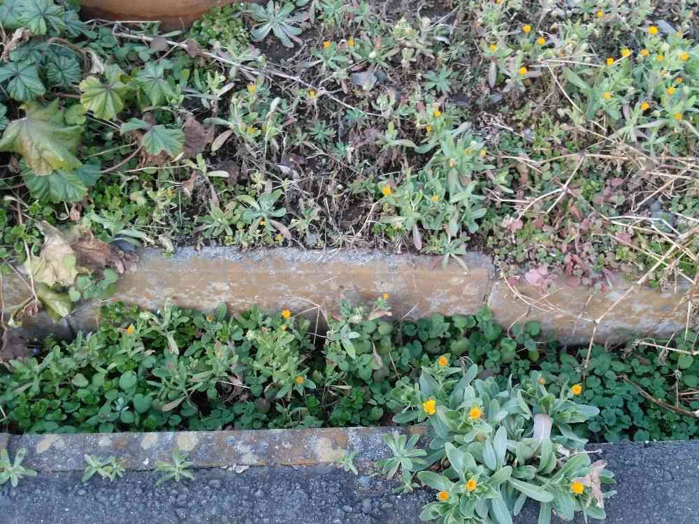 昨日、笠間市の観光案内所の駐車場の車止めの後ろの花壇と溝に、