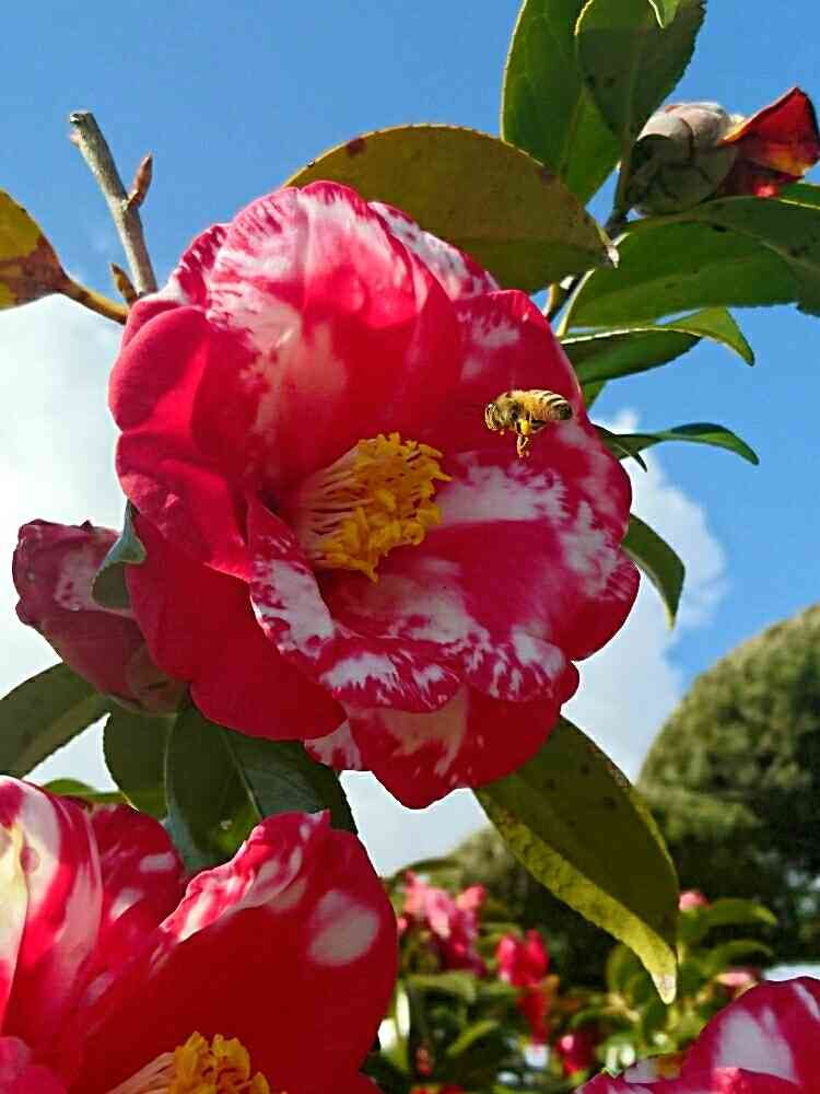 蜂さんも椿の開花お待ちかねだったのかもね🐝