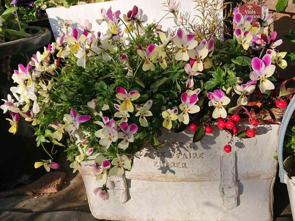 いいな❤️羨ましい限りです。こんな素敵な鉢植えラッキー🤞明るく心温まる色合い、可愛い形のビオラさん達💕