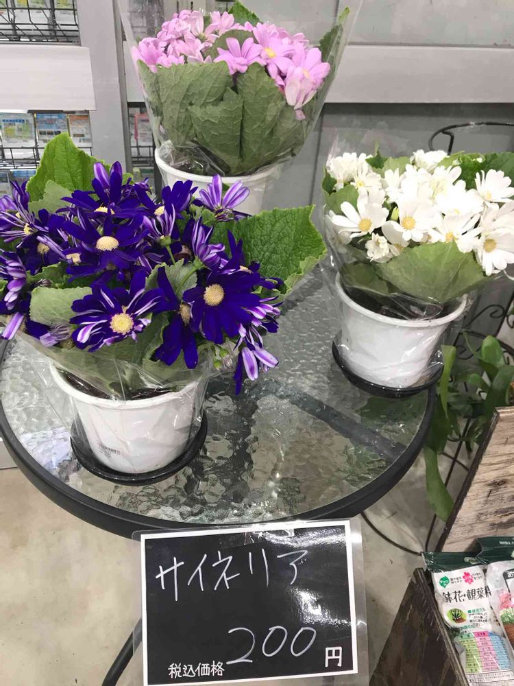 会社の近くにあるホームセンタータイム長船店横実りでサイネリアが200円(税込)で売られていました。🌸🌼