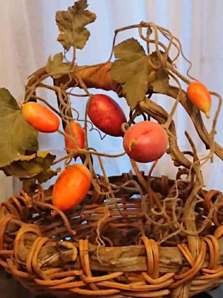20数年大事にしている蔓で出来た籠にカラスウリを絡めてみました😆