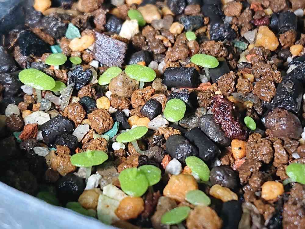 先月始め適当に蒔いたら適当に発芽、今見たら産毛のような本葉展開してるな