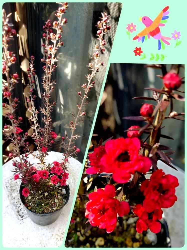 赤いお花でかわいー(ू•ω•ू❁)マヌカの花🌸