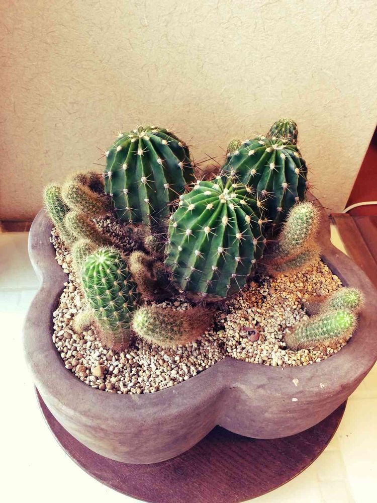 群れを成した姿が可愛いので、この子達はまだこのまま育てています。このサボテン(たぶん短毛丸)は沢山子供を吹くので、独立させたらきっと家中が短毛丸だらけになってしまいます。😅😅