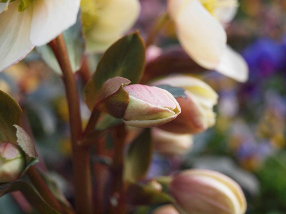 いろいろ気忙しく、しばらくサボっている間にクリスマスローズの蕾が沢山上がっていました。二番目に咲いたのはアイボリーの優しい色。蕾もいっぱいです。