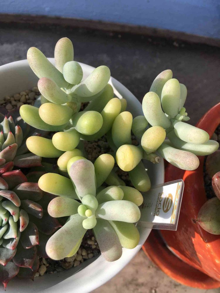 バナナ美人さんがピンクっぽくて黄色っぽくて緑。紅葉しようか悩んでる??お迎えした時は小さくて合鉢にしたけどそろそろお一人様の鉢に植え替えかな。