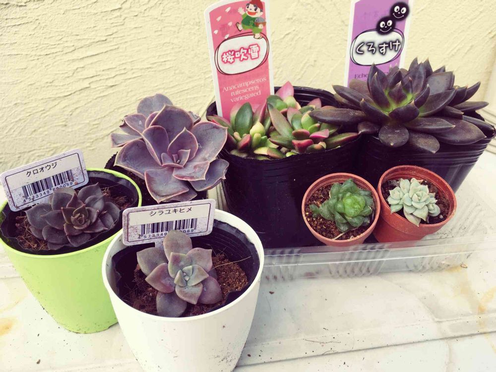 帰り道に寄ったキャンドゥでも多肉の扱いが始まってたようで、クロオウジ(ブラックプリンスではないよね❓)とシラユキヒメと名札のついた多肉をGet❣️王子と姫はセットじゃないとね♪( ´▽`)