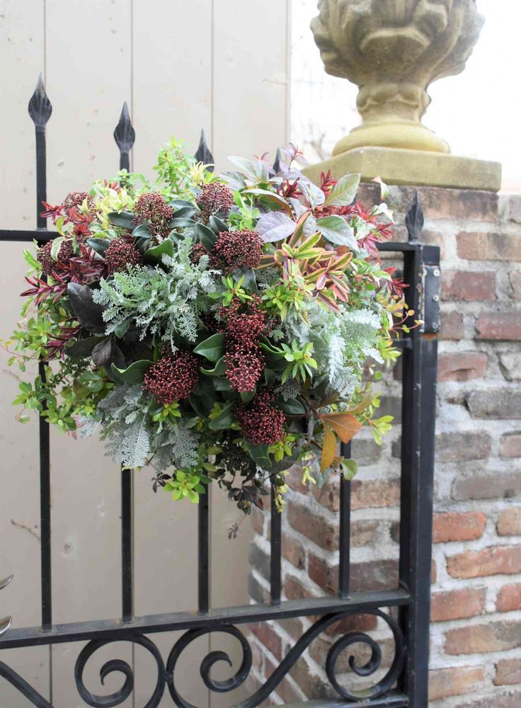 スキミアのハンギングバスケット