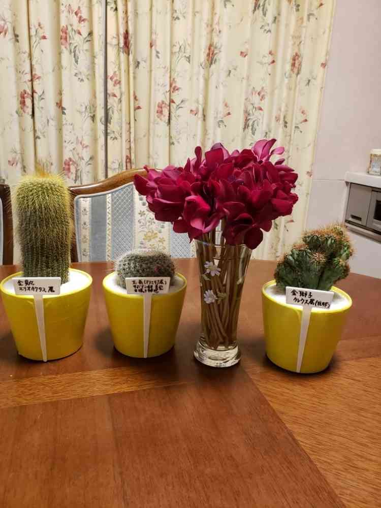 側に置いたサボテンは、先日、名前をGS友から教えていただいたものです。名札をセロテープで鉢につけておきました。