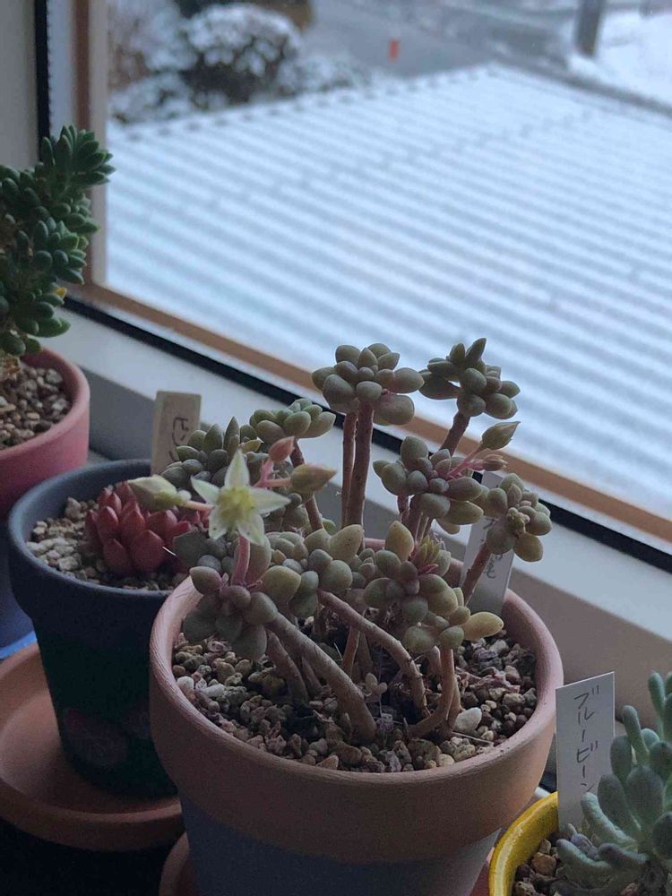 外は雪❄️が降っているのに、いつの間にか姫秋麗さんにお花🌼が咲いていました😆