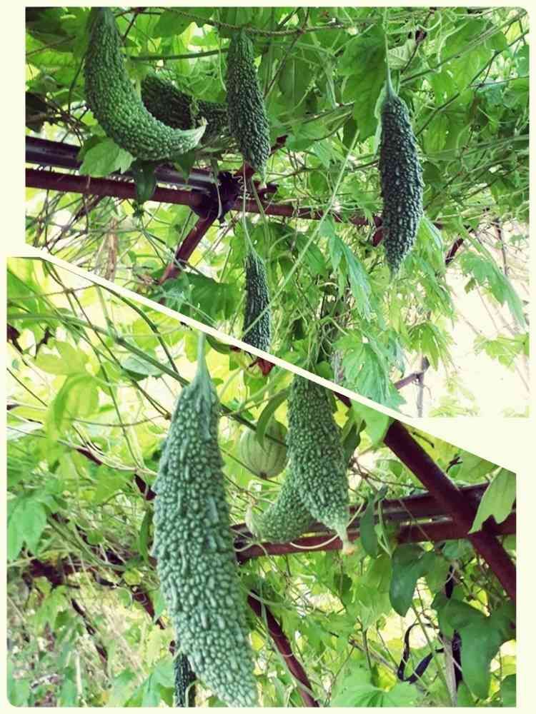 畑はハウスの骨組みにゴウヤのトンネルみたいになり涼しくて綺麗ですよ😆あまり手もかからないし👌😁