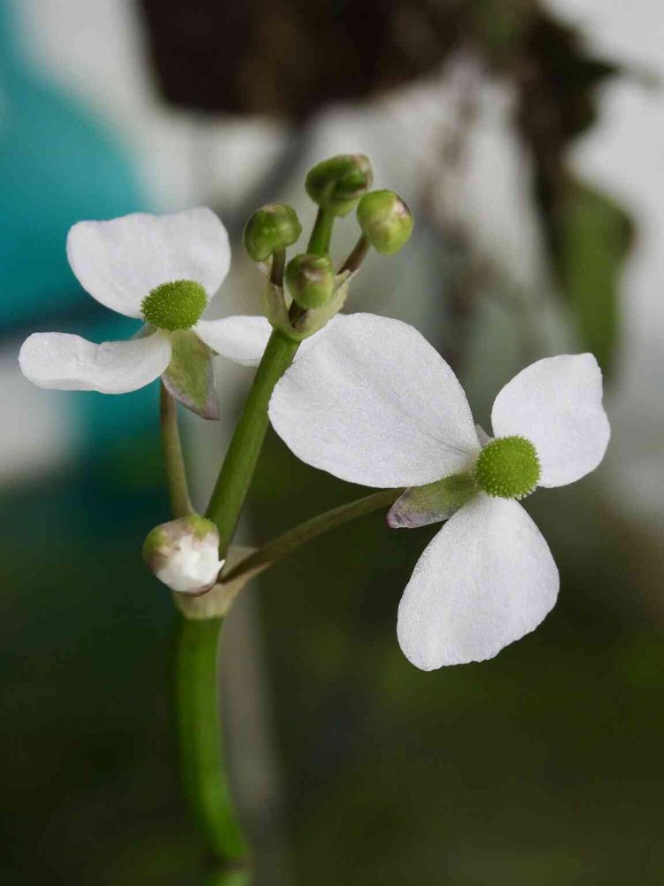 花は日本のオモダカそっくり。水上の葉っぱはヘラオモダカに似ています。