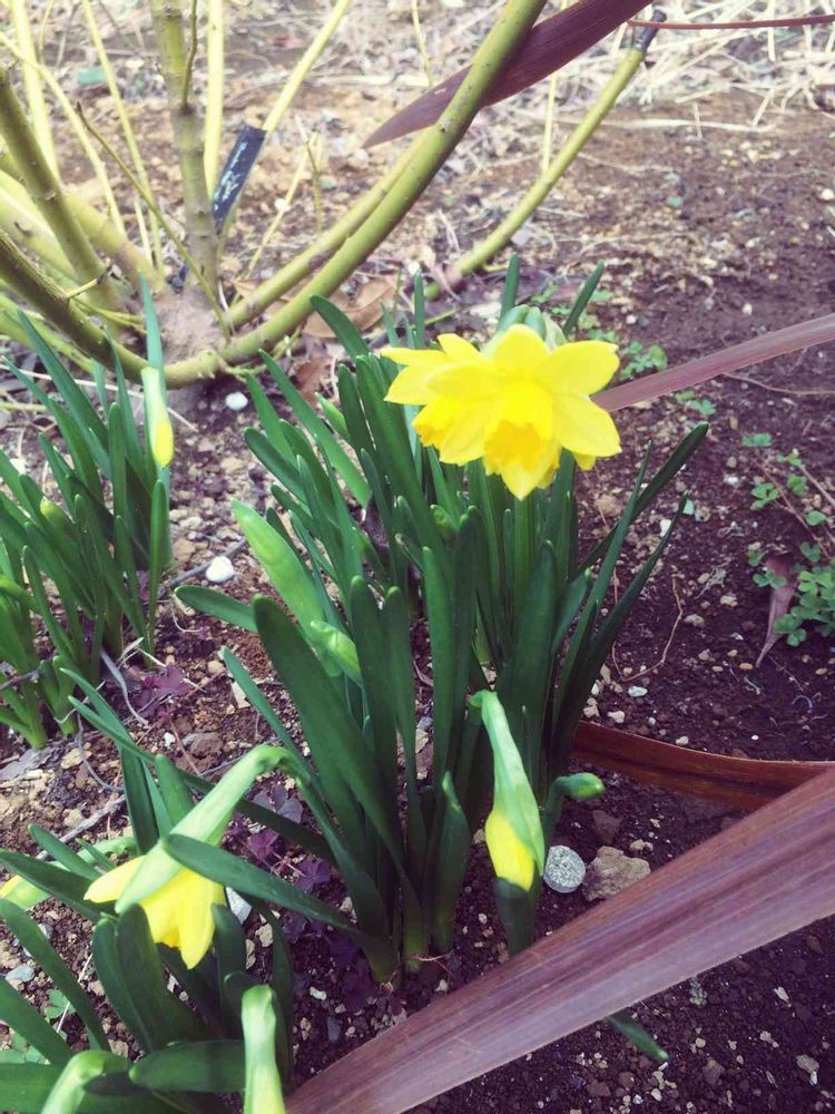 来年はもっと枝数をふやして、スイセンも群生させたいものよのう。