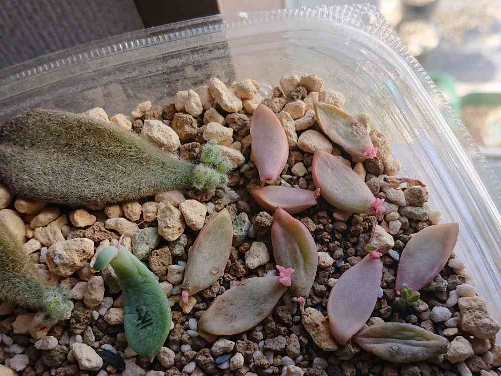 あんまり強い日光に長時間あたると親葉が枯れそうなので半日陰で置いています!