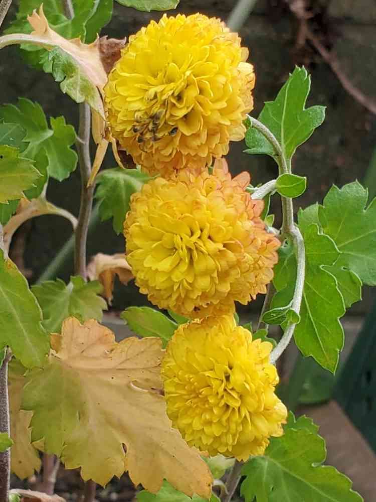 可愛くまあるく咲いてたのに、ポツポツ 下から新しい葉っぱが出てきたので切り戻し