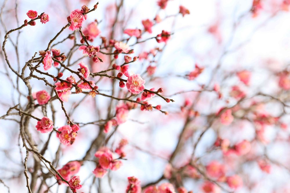薄紅梅の花が咲き乱れて春の訪れ