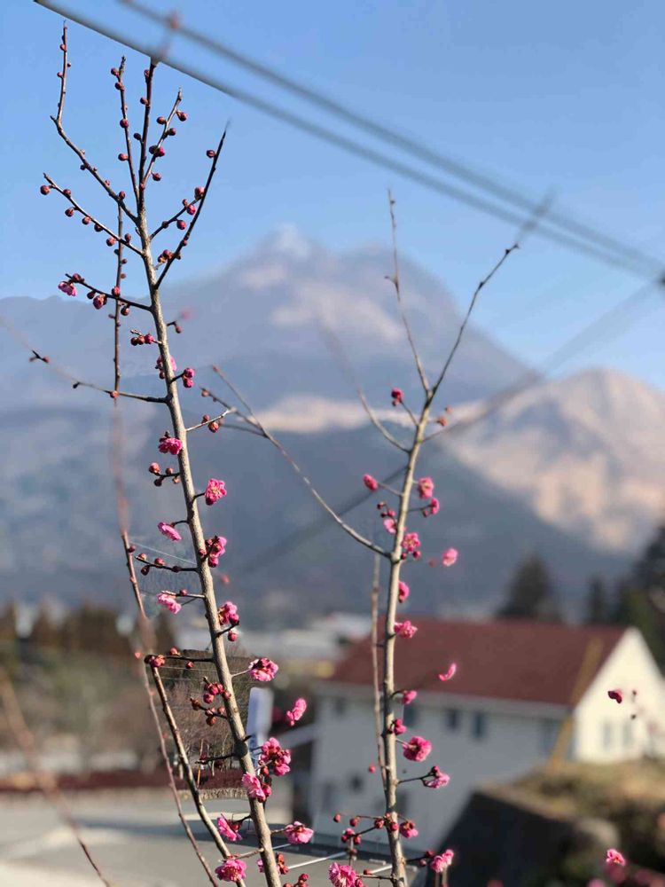 2月1日の写真です。由布岳の麓をサイクリングしてて見つけた梅。暖かくてサイクリング日和でした。