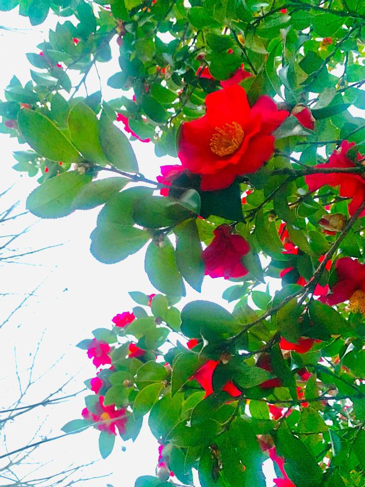山茶花や椿、真冬に緑の葉🌿と鮮やかな💮に癒やされます