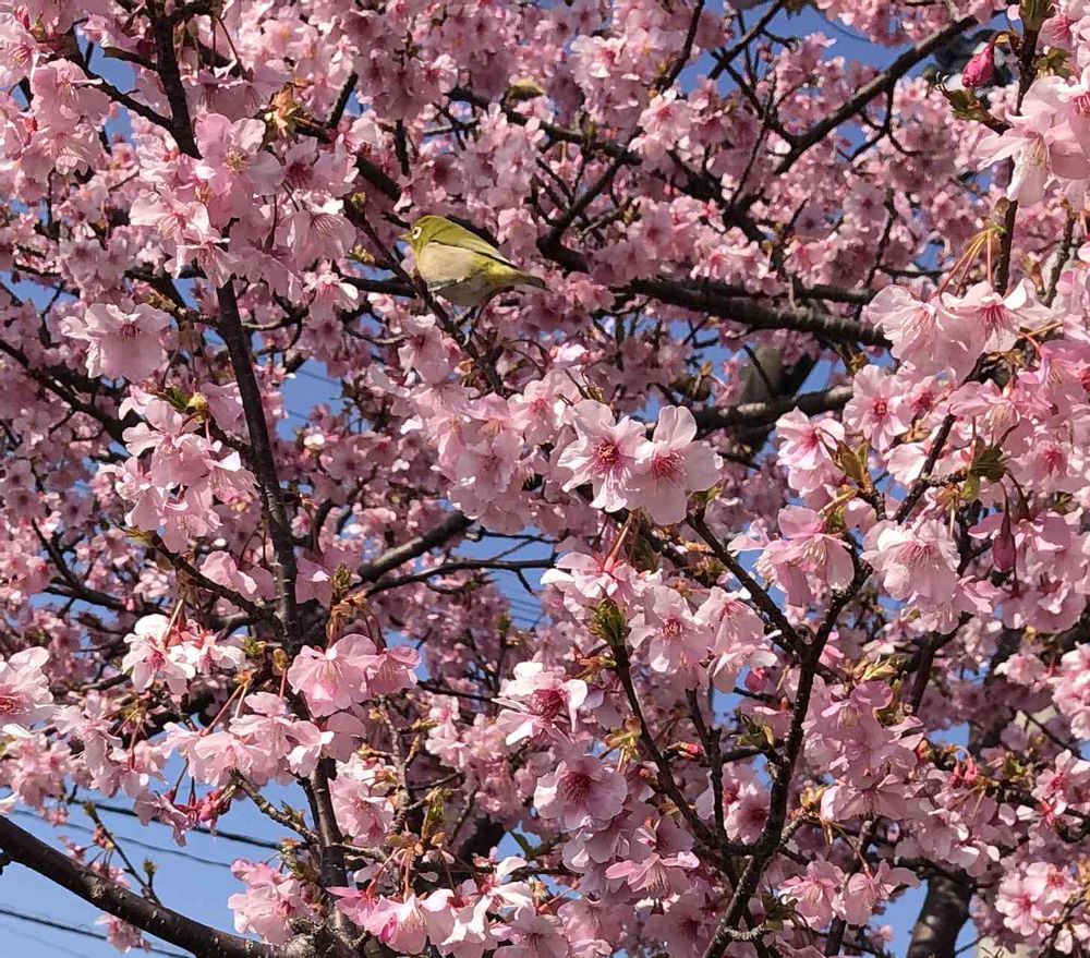 🌸満開に咲きました、メジロの群れが来て、花蜜を啄んでいましたょ。