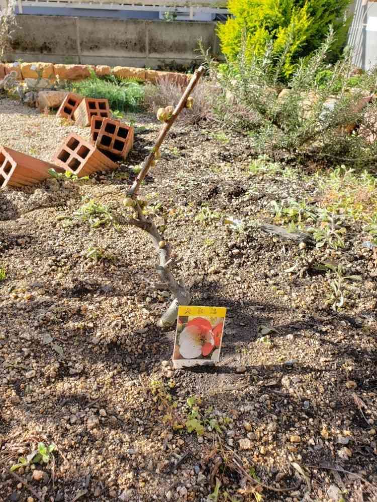 母がボケを買ってくれたので、早速リビングから見える位置に植えました❗
