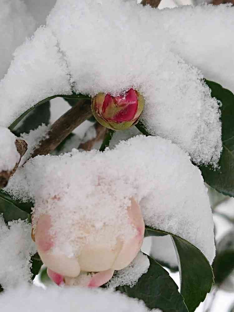 小さな庭,ゆき,山茶花(サザンカ)の投稿画像