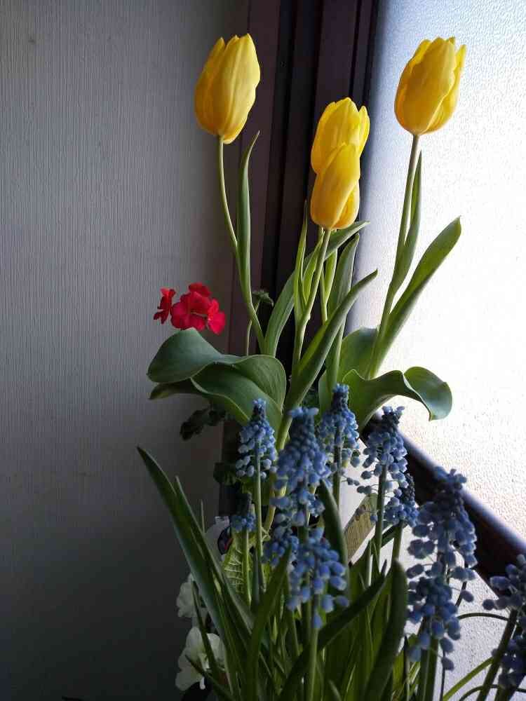 お持ち帰り品の背比べ🌷💛↑🌼*・💜↑🌼*・❤↑