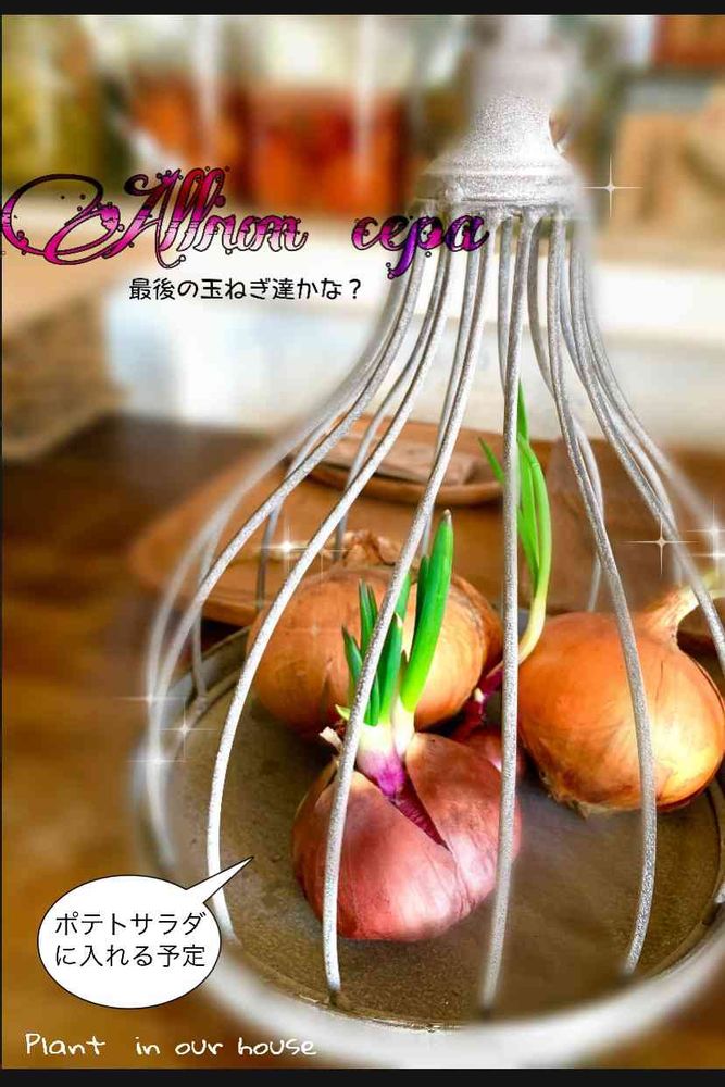 本当だ、よく見たら紫玉ねぎの芽、元気ですね〜😆