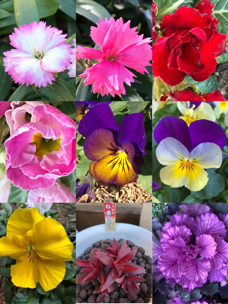 ナデシコ、薔薇咲きジュリアン、ビオラ、パンジー、紅葉まつり、葉牡丹