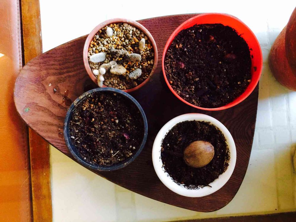 今日、食した後のタマリンドの種&アボガドの種を植えました🥜🥑。 無事に発芽してくれる事を祈り👏🙇♀️ 芽が出るまで乾燥と温度に注意して気長に見守らなければ〜😊