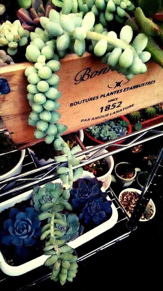 ながーいビアポップちゃんの先端に見えるブルーの多肉ちゃんもキレイですぅ(◔ω◔ * )