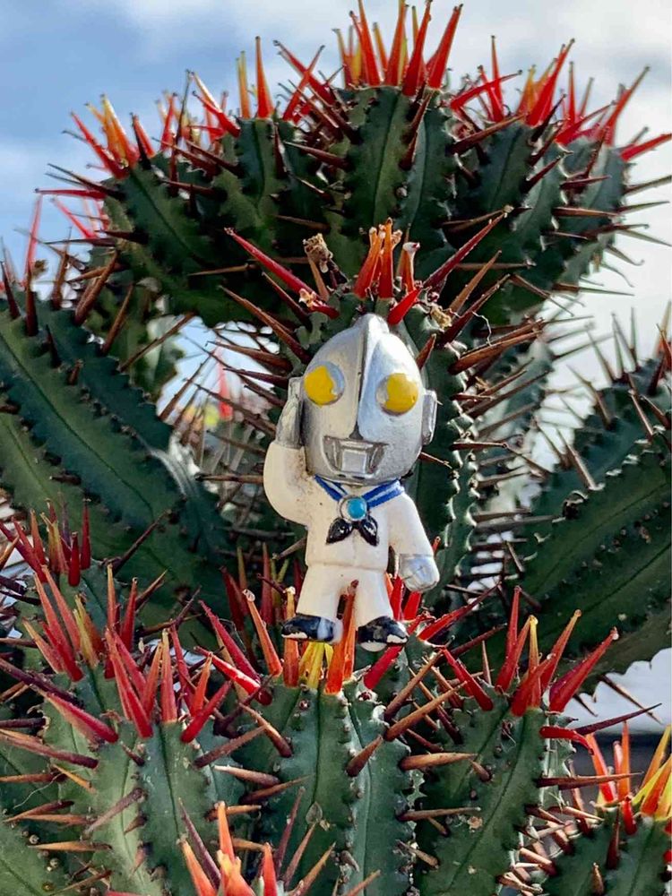 親指より小さいウルトラマン、🌵に乗せるの大変だったぁ💦🥢