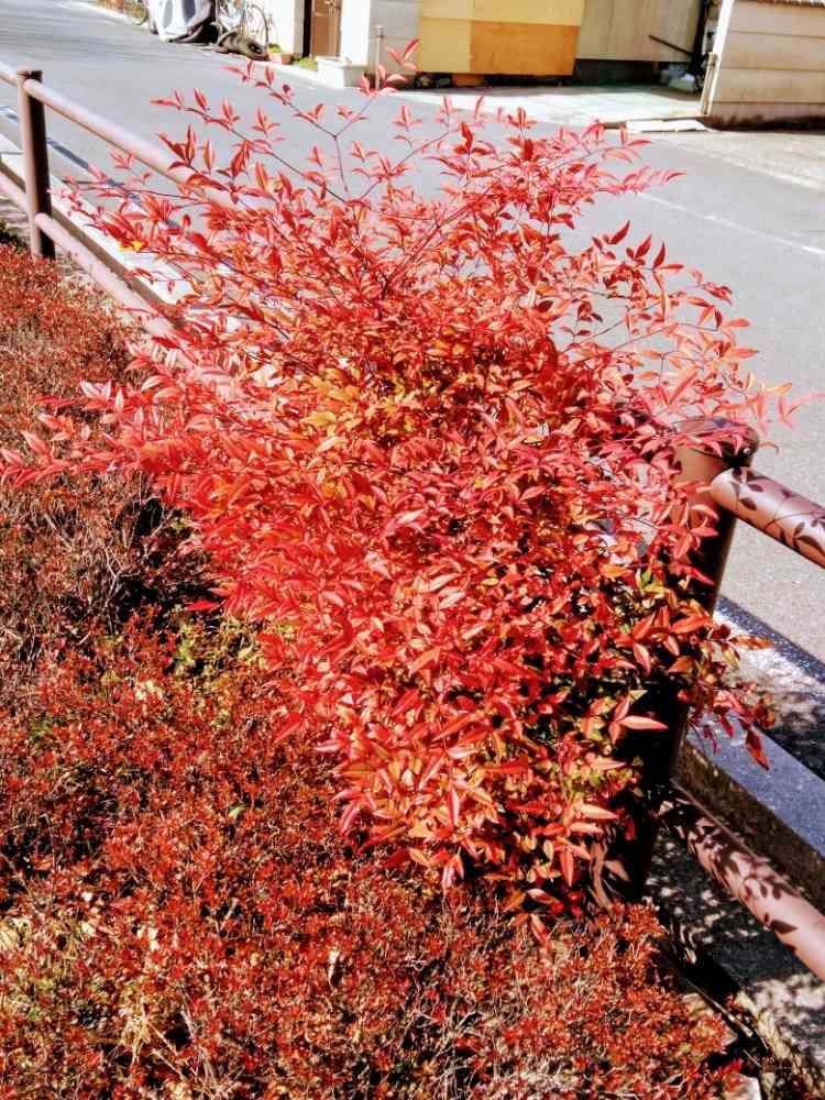 散策の通り道、水元公園の側にある歩道沿いの花壇に、南天が有りました。
