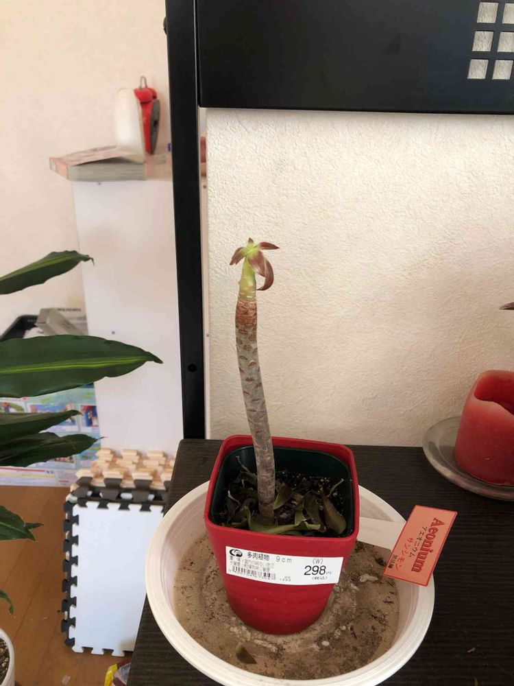 プルメリアではないです。プルメリアは頭の方から上に向かう新しい葉がでます。サンシモンの葉が落ちたやつですね🤗