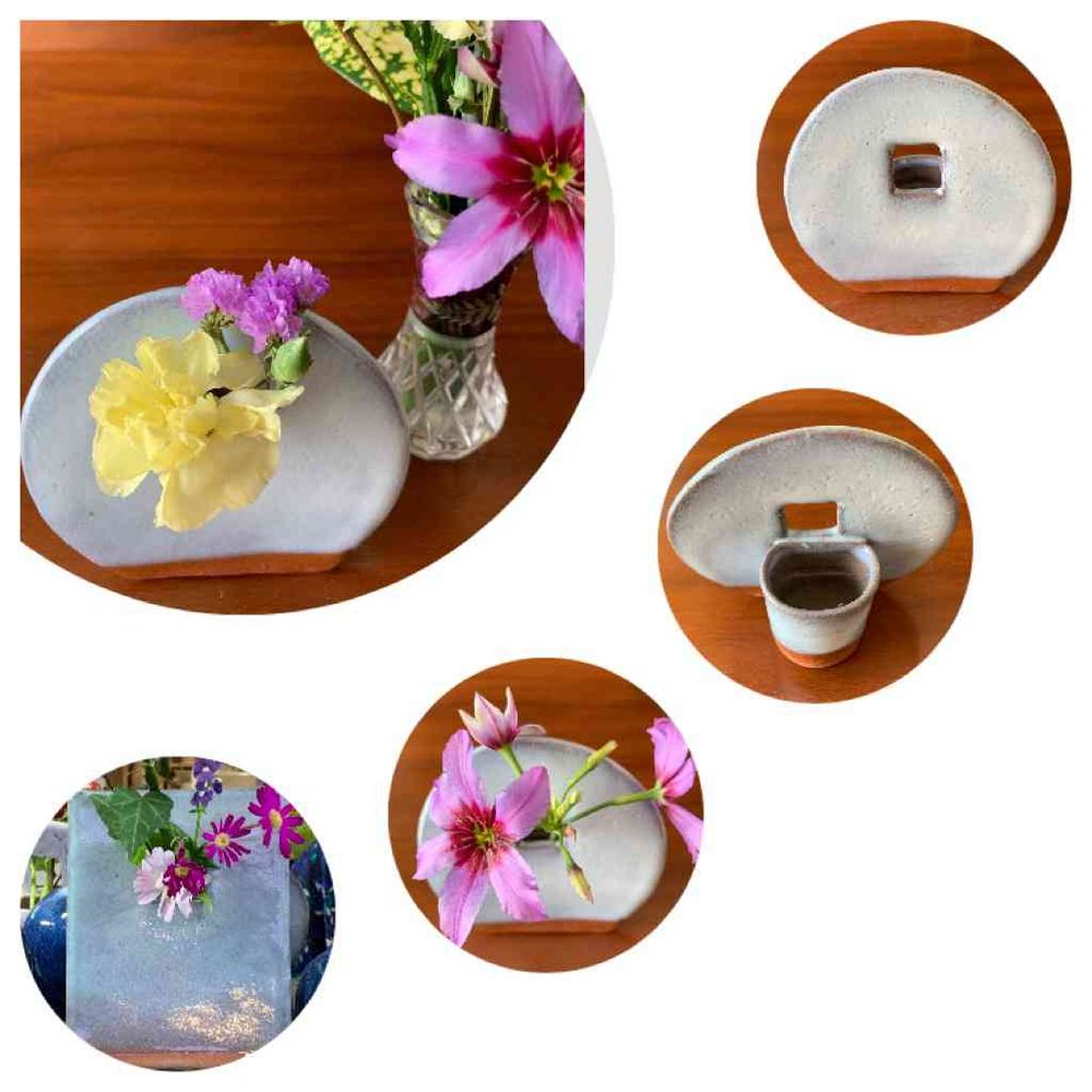 テーブルウェアフェスティバルにて萩焼のフラワーベース(一輪挿し?)を購入。売り場では四角いタイプに素敵に生けてあったのですが自分でなかなかはうまく行きません(-_-)木の枝などが合うのかも🤭