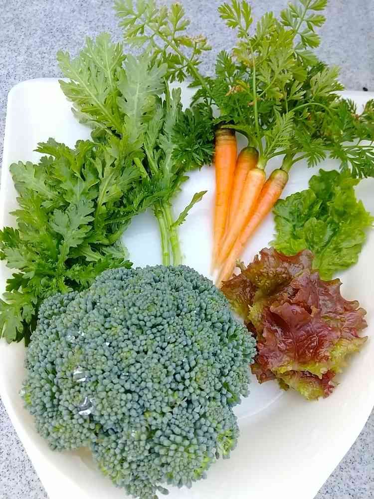 ブロッコリー、春菊、ミニニンジン、サニーレタス、レタス