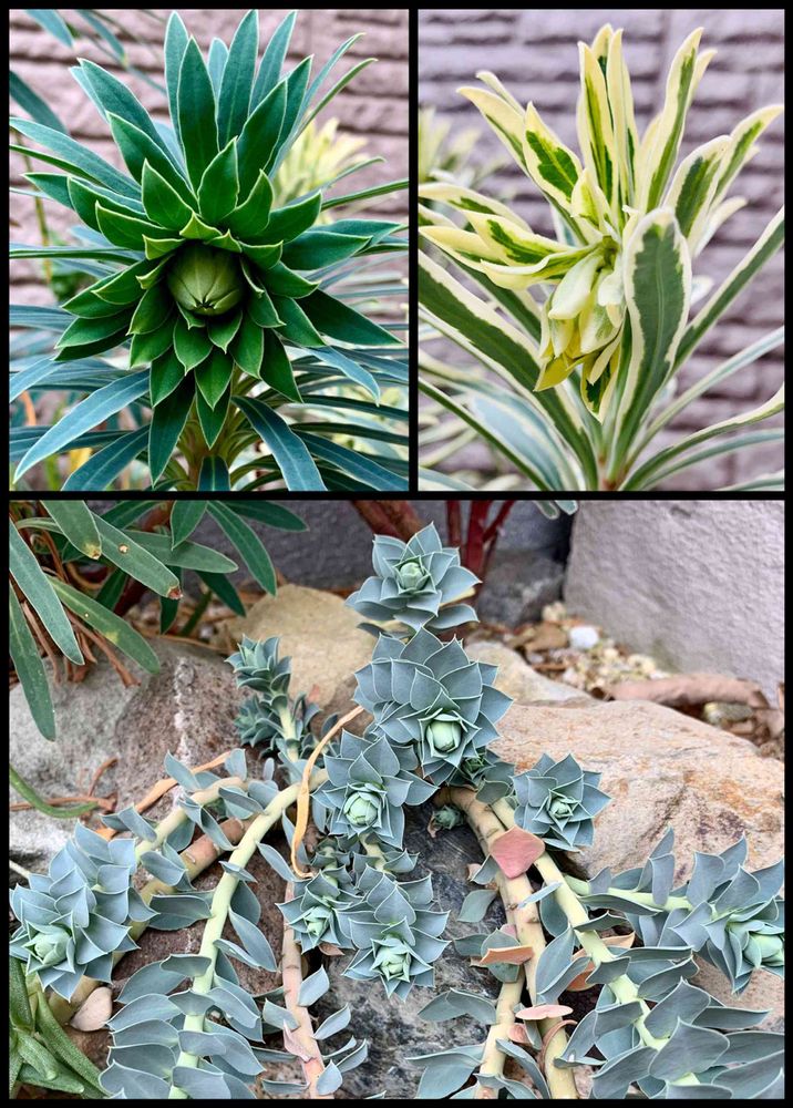 ミニロックガーデンのユーフォルビアたちがいっせいに蕾らしきものをつけました。楽しみです😃