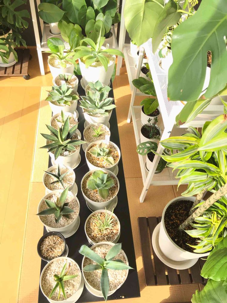 段々と増えちゃってます😅たいしたものはないのですが。去年おまけでもらったアテナータとかナナとか、HCで300円😳で見つけた吉祥冠とか。吉祥冠もう持ってるのに💦比べてみたくて💦 アガベ沼恐るべしです😆