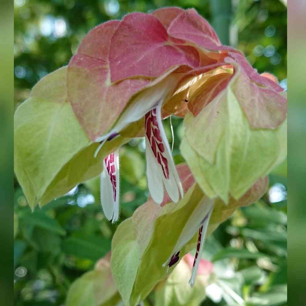 海老の体のように、重なって見えるのは、苞(ほう)で、その先端に白い花を咲かせています。