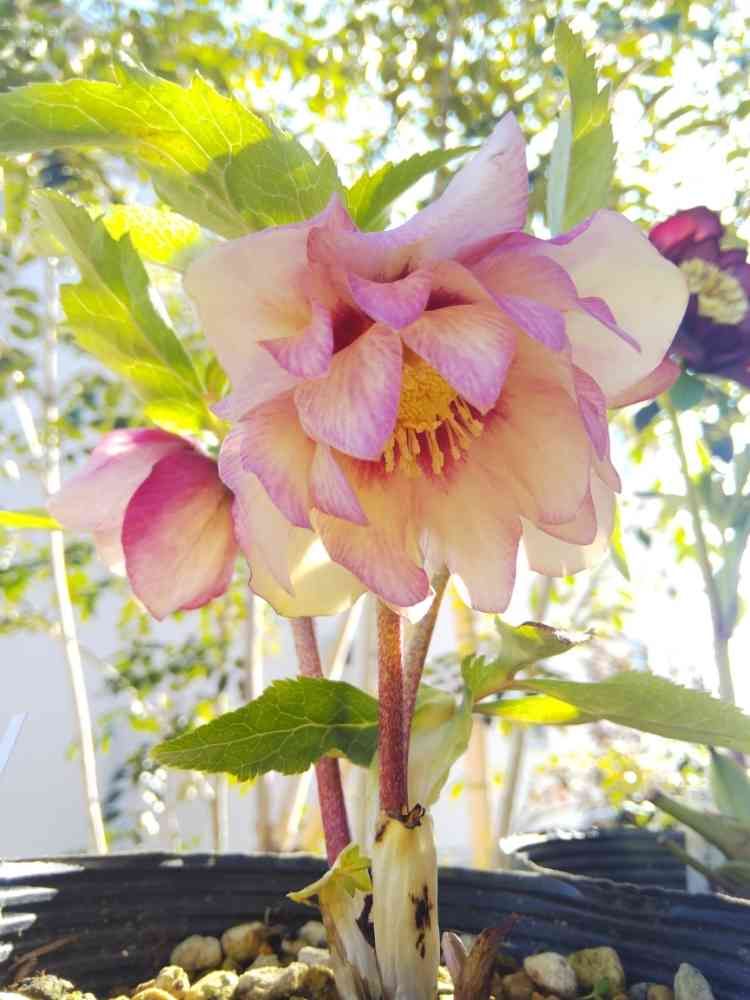 こちらはクリスマスローズ第3号!アプリコットフラッシュ(ゴールド)×プリマヴェーラホワイトゴールド(長い…)で、桃みたいな色に一目惚れしてお迎えしました!蕾の色から、後ろ姿まで全部好き😍