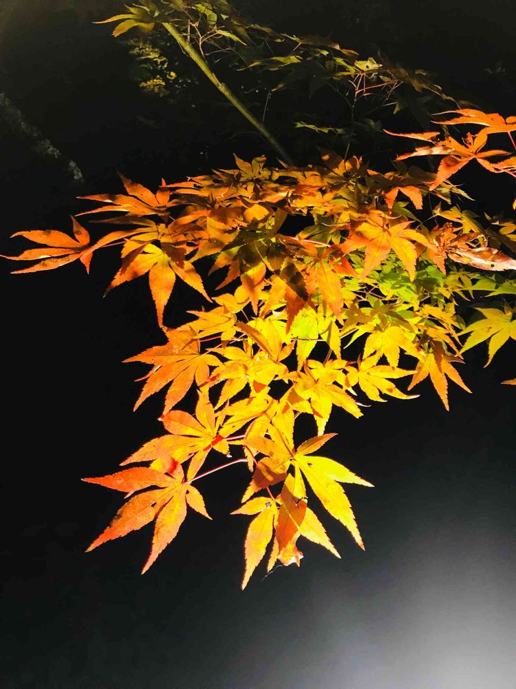 晴れた日のお昼に見渡すモミジも、ライトアップされる夜に見るモミジ、どちらも大好きで毎年交互に見に行っているような気がします😂