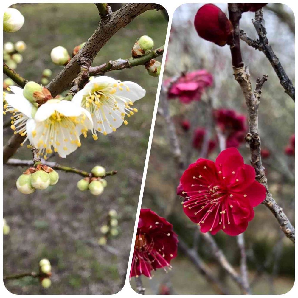 可憐に咲く紅白の梅