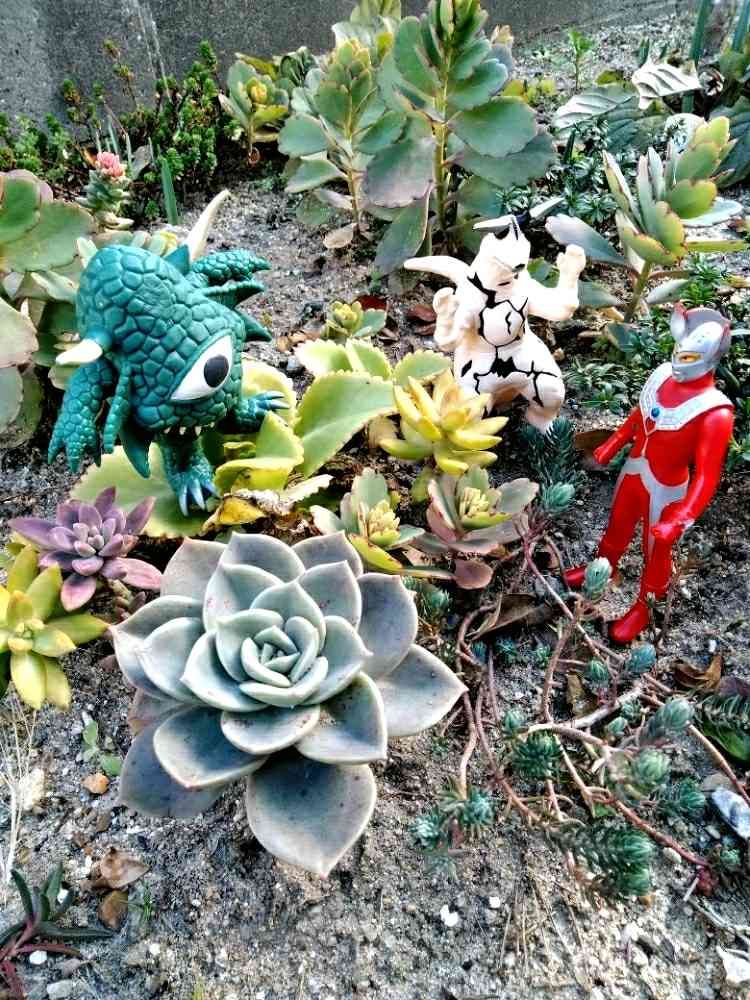 多肉ちゃんとウルトラマン、怪獣のコラボが楽しい🎶