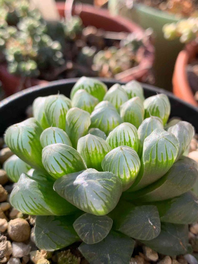 100円トルンカータ🌵もう一個の方です‼️同じ土同じ環境で何故色がこんなに違うのかなぁ🤔こちらも波平さん並んでます😄