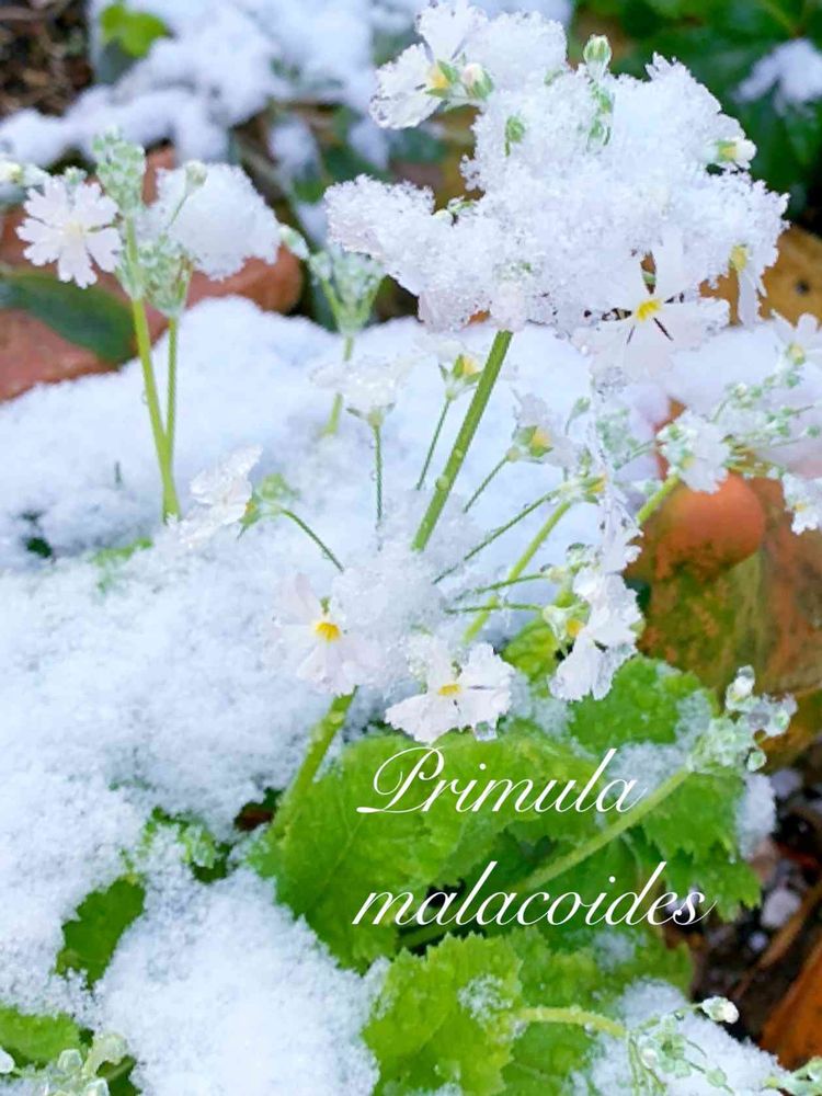 プリムラ🌼と雪❄️、見分けつきましたかあ😁⁉️