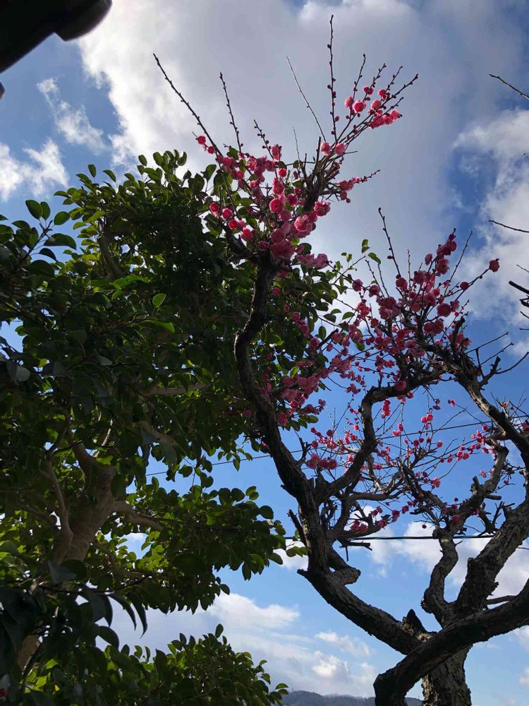 我が家の庭の寒梅が今日の陽射しをうけ、