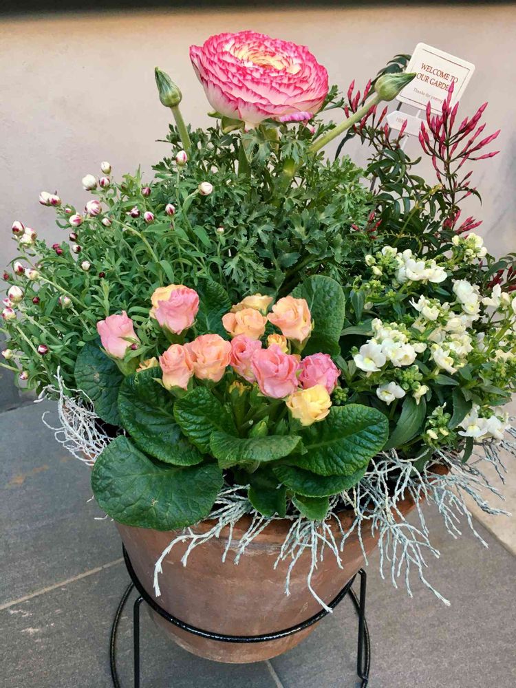 今期はピンクのお花が少ないなーと思い、とびきりラブリーな寄せ植えになるように意識しました☺️💓気に入っているので、褒めていただき嬉しいです😆❤️