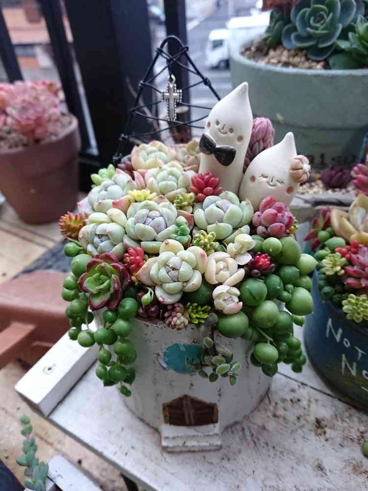 可愛い❤️❤️寄せ植え上手だしカップルにょきっちがチャペル缶に💒素敵〜😍